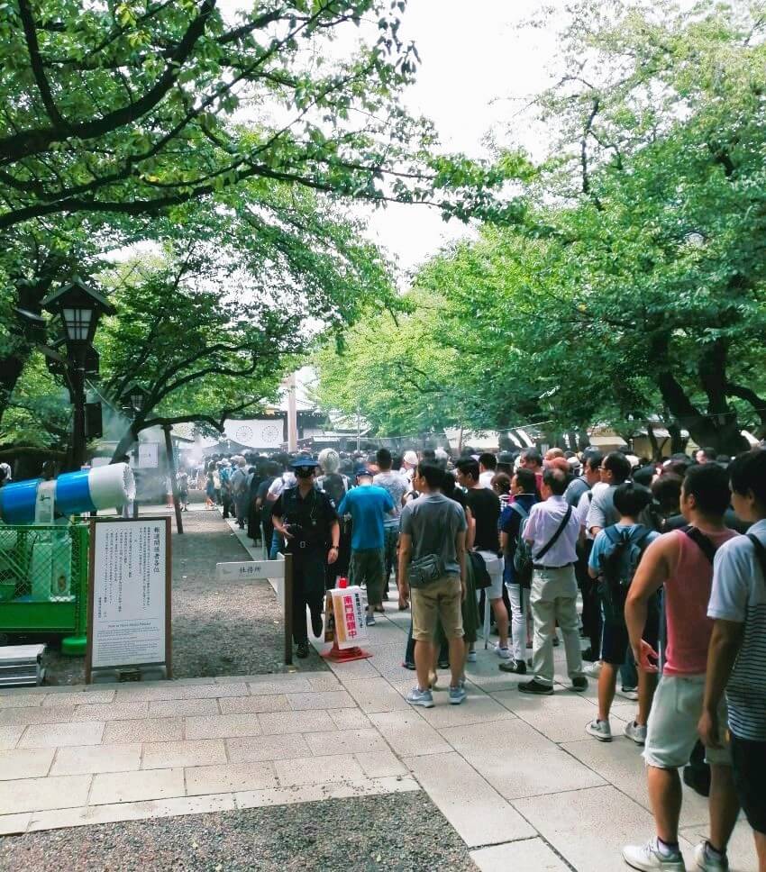 近代の日本を築いた先人へ謝意、参拝者お一人お一人の想いが、手水舎で手を清める水も気化させるほどに熱気を帯びております。